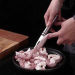 One knife helps you peel complete shrimp and clean fish.
