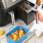 Air fryer silicone baking trays are an excellent alternative to disposable air fryer paper liners. They are durable, save your money and protect the environment.