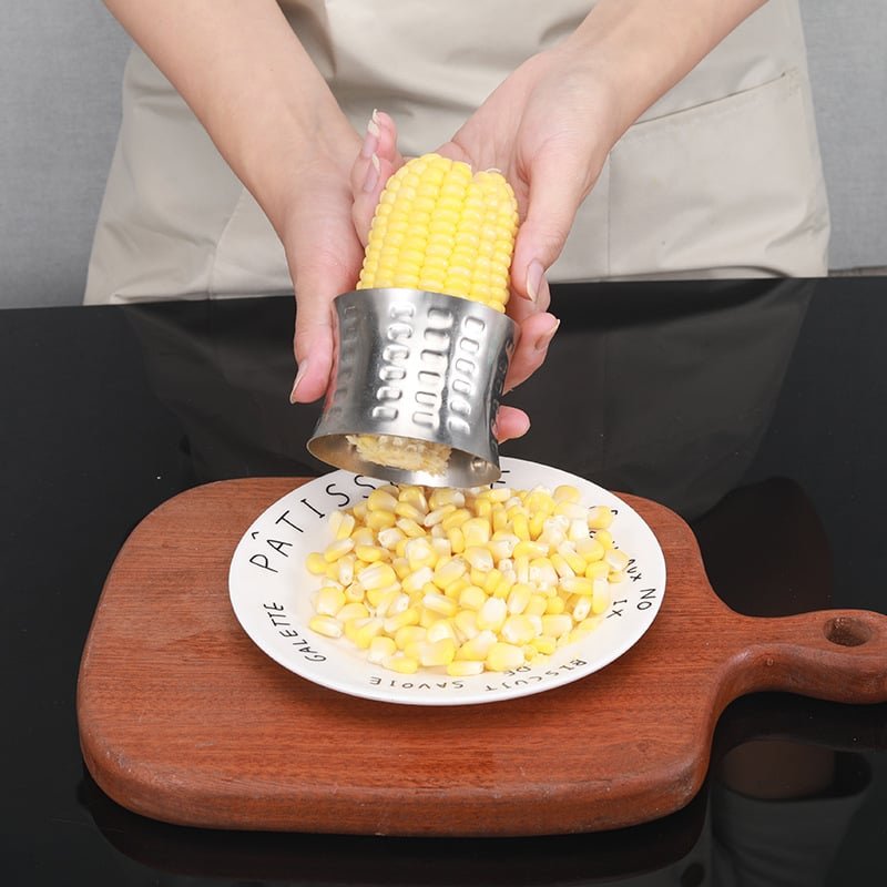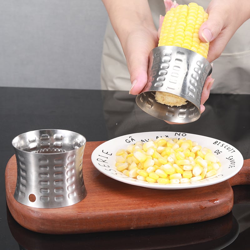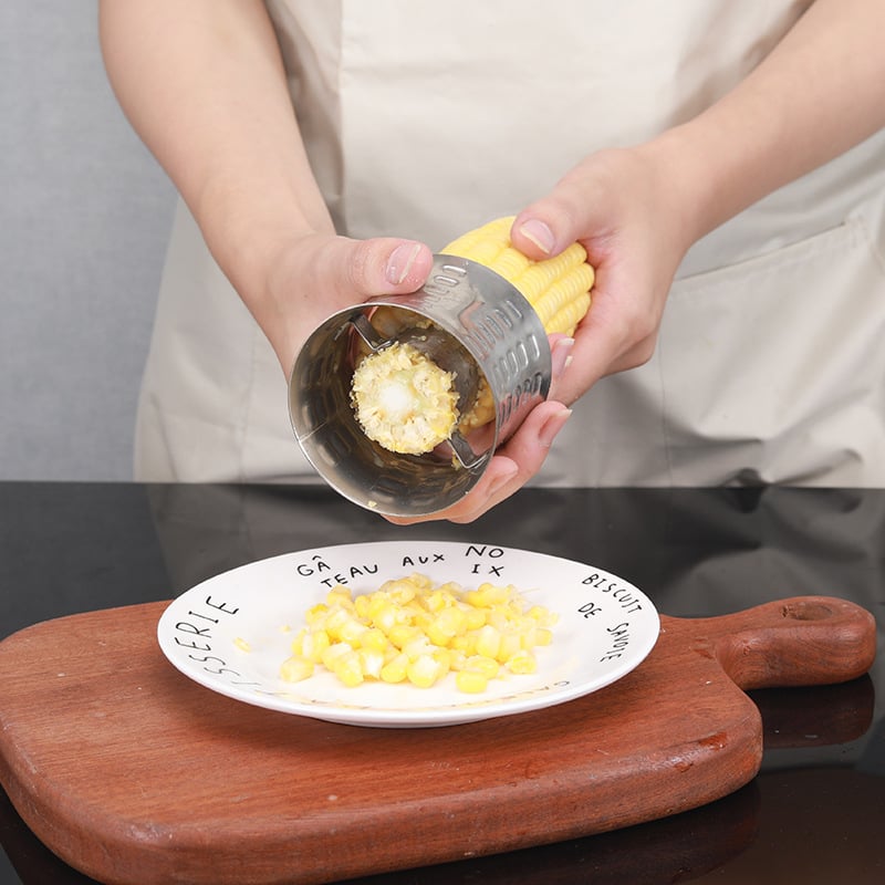 Serrated Twin-Blade:Durable stainless steel twin-blades effortlessly strip kernels in seconds,speed up your cooking and baking.An essential kitchen accessory for home cooking enthusiasts.