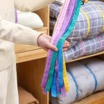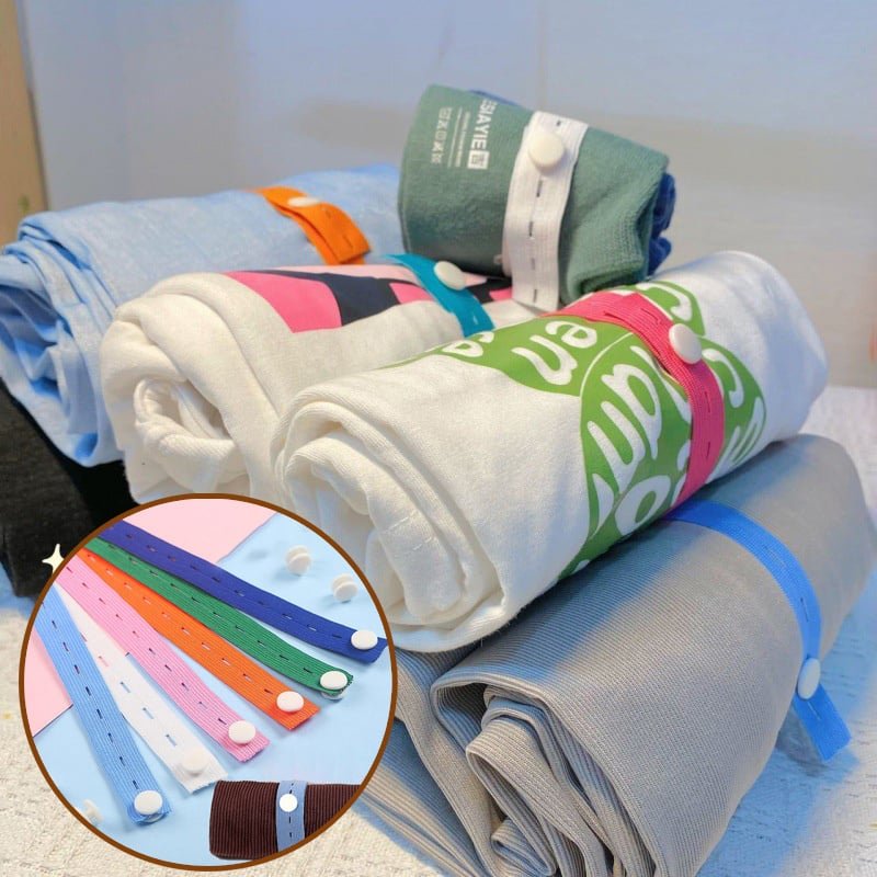 This elastic button strap can roll up the clothes, pants, quilts, and blankets at home for easy access, making your wardrobe more tidy!